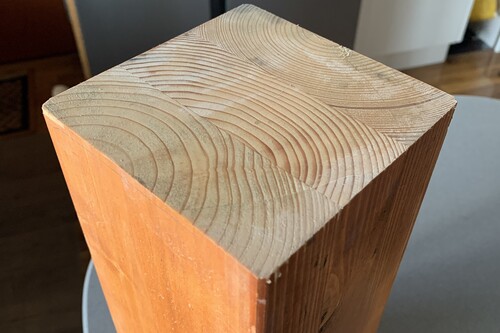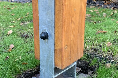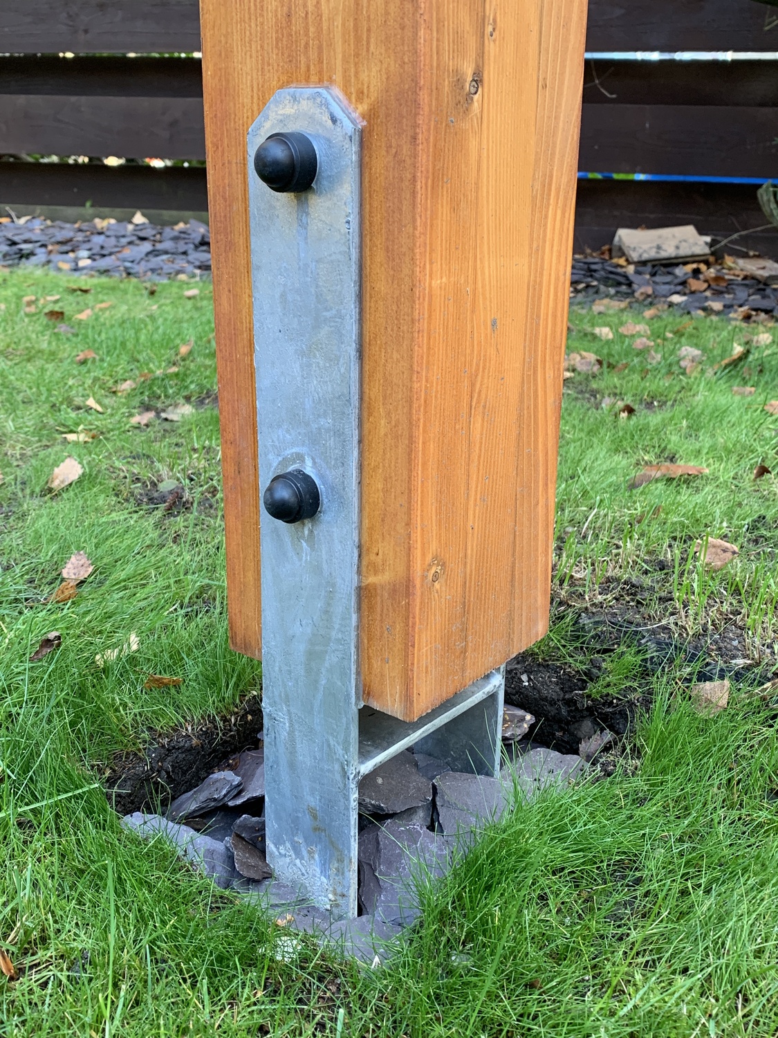 The posts we use are pre-treated, kiln dried, laminated Larch. These will be supplied to you coated with Remmers UV stable lacquer, and with any minor splits filled and sanded. Although more expensive, they are much more stable than rough sawn solid wood posts which will start to dry out as soon as they leave the timber merchant’s yard and inevitably, cracks will start to appear after installation. Laminated timber is far less prone to splits and warping, but is still a natural product and it’s appearance can change over time.